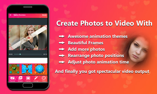 Dont't miss special moments and clicks of celebration and create video easily with few steps with help of Music video maker. You can make video with pictures and music from gallery.Music Video Maker very easy to use.You can arrange the photos in order with the perfect background, music and animation to create a video of your own.