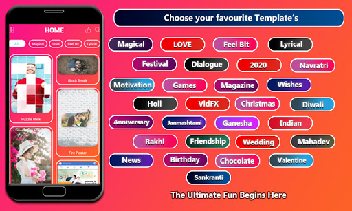 > This app is to use every day because here we have all the categories like festivals,wishes,love,birthday,anniversary,news,trending and more and more video effects is waiting for you..
