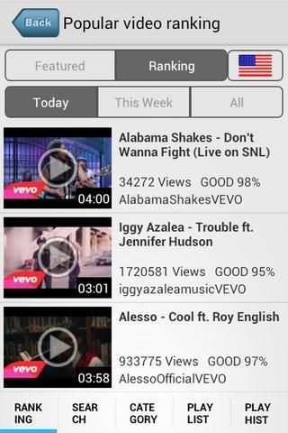 Discover the latest music trends from the iTunes/UK/Mnet rankings and search for songs on video sharing websites with this music player app.