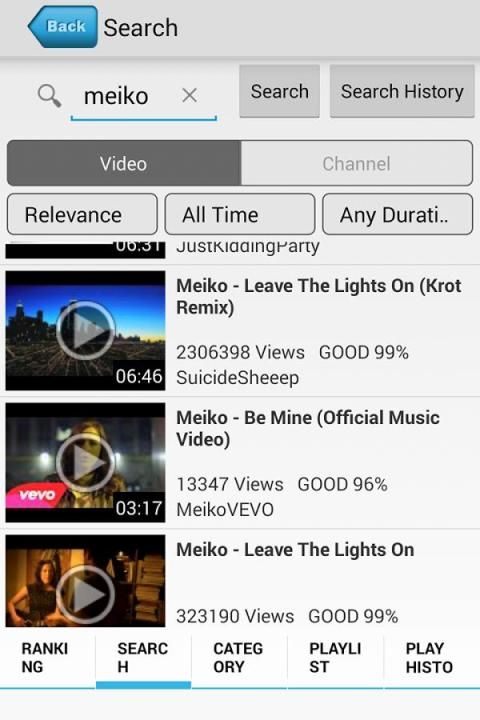 Using video sharing sites on the web as a resource, more than 20 million music videos are searchable and playable with this app.