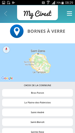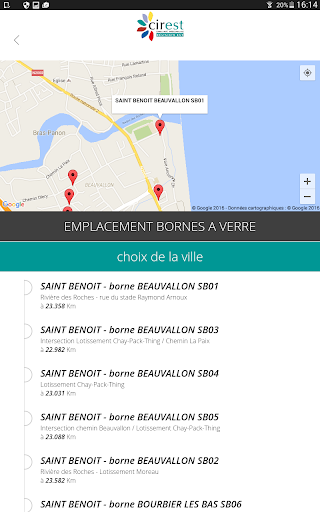 - Les emplacements des bornes à verre sur une carte, avec recherche par ville