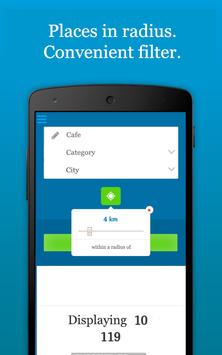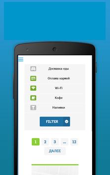 * Easy search is carried out along the radius, wifi, food delivery, taxi, time, address, ratings, reviews.