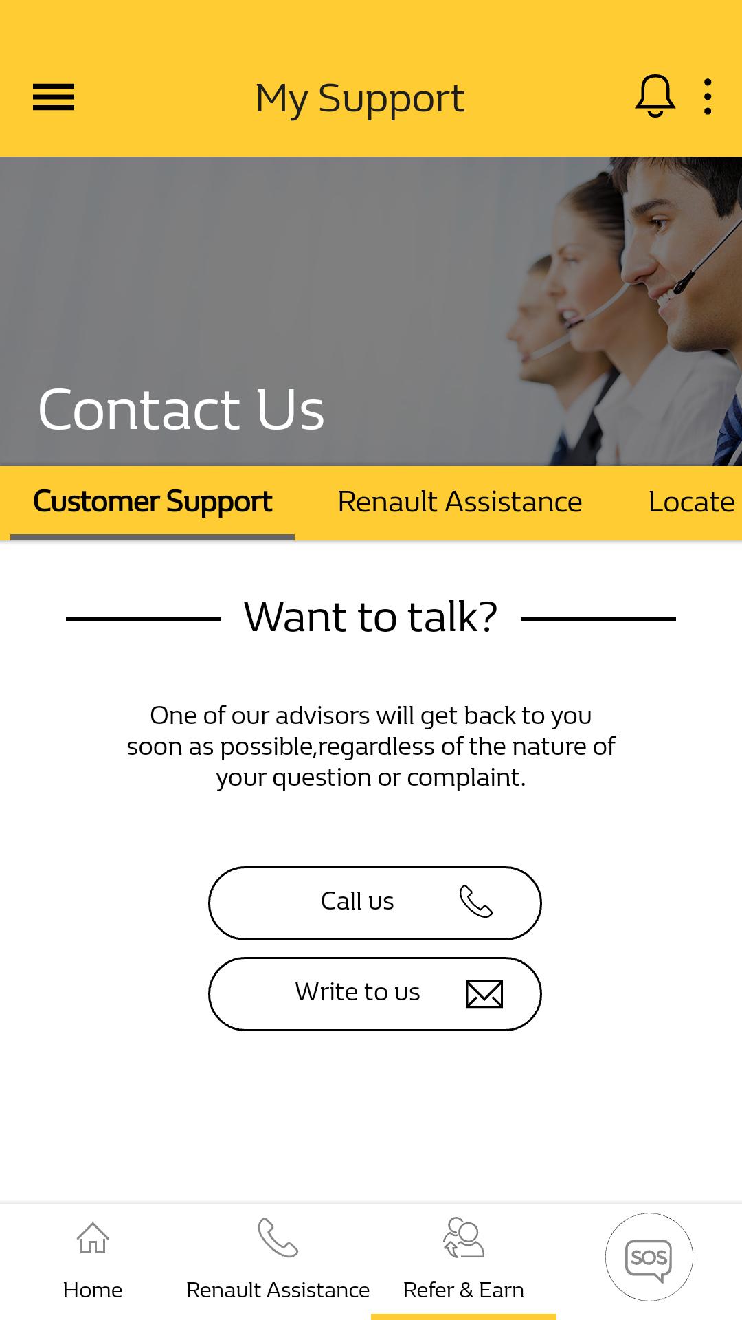 # Quick access to Renault Dealers, Customer Support, Road Side Assistance