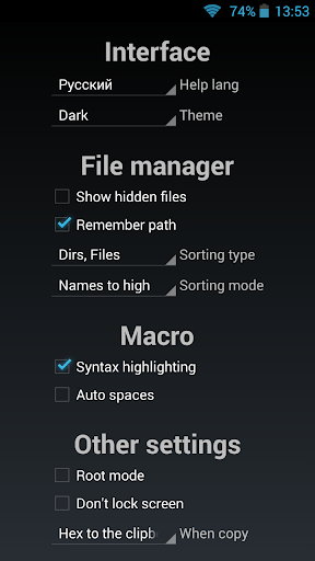 Program designed for viewing and editing the binary files. App contains tools for editing, searching and comparing of the files. The macro system will help to cope with any task, the solution of which is not provided by built-in tools.