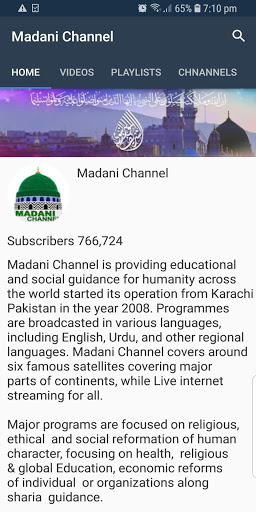 Features * Watch Videos from Youtube Islamic Channels * Watch videos of 100% pure Islamic Channel Madani Channel and other offical Channels of Dawateislami * No Adds * Search Restricted to the Selected Channel. * No Suggested Videos