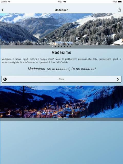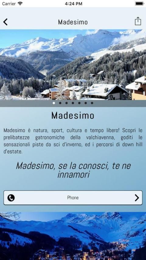 Madesimo, if you know, you fall in love! This app was created to increase services to citizens and tourists who appreciate all the qualities for the winter and the summer, Madesimo! This app was born from the Community project of the mountain Valchiavenna to provide an app all the municipalities of Valchiavenna!