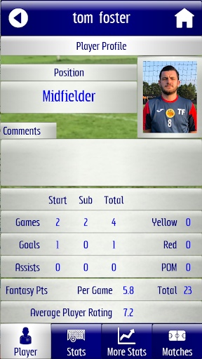 Matches - keep records of all games including goal and assist information, player ratings, line-ups, substitutes, formations and more!