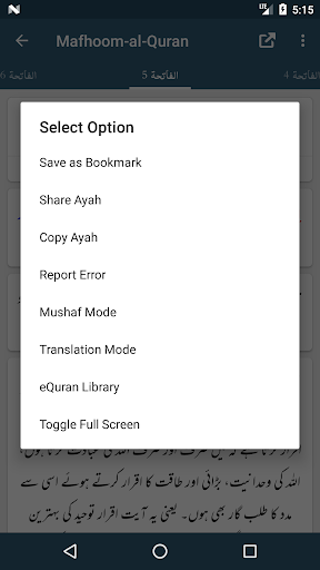 - Share Ayah with or without Quran Translation (Tarjuma) and Tafseer