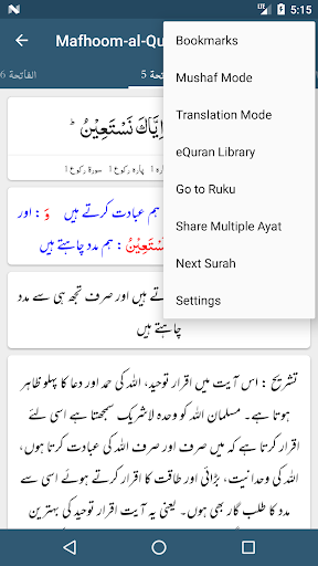 - Mushaf Mode: Recite Quran with Translation (Tarjuma) or Tafseer