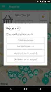 - The shop is not there anymore, does not accept credit cards or meal tickets? Report it and Magazoo will change that for you.