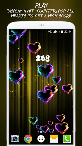 Magic Hearts has some cool customisations, you can set number of hearts, speed, direction, change background theme etc. Also you can play, pop as many magical hearts you can and the points will be shown in the background.