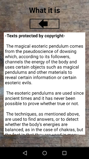 This application will explain how a pendulum works and how to perform the first esoteric tests. It also includes some prayer to channel positive energy with the pendulum and more information