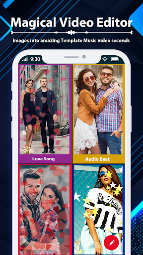 Magic Photo Video Status Maker - Video.ly have various free themes and unique transition. It only takes one tap to create an awesome music video or ideal slideshow instantly. VideoMaker & VideoEditor makes it easy for you to grab attention and gain more followers and likes on social media by editing your photos and clips into eye catching video.