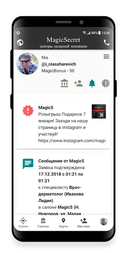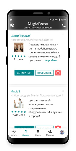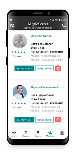 В приложении Magic Secret вы можете записаться на процедуры в наши Центры лазерной эпиляции во многих городах России и за рубежом, сделать это онлайн или по телефону, а также получить консультацию у специалиста. При этом вас ждут различные акции и приятные подарки.
