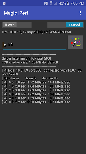 Magic iPerf is tool that actively measures achievable data rate on IP networks. This tool is designed for experienced users of iPerf or iPerf3 and requires at least two devices for network performance measurement. Besides your phone/tablet running this App, you will need another phone/tablet running this App or another PC running the conventional iPerf/iPerf3.