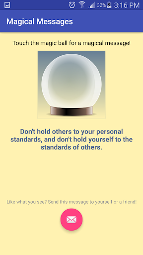 Magical Messages displays little statements of motivation, compliments, or inspiration to help brighten your day. Messages can be shared with family or friends via text, email, or other text-sharing methods available on your device.