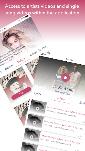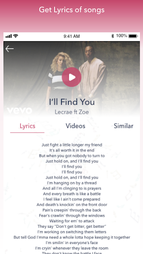 updated song lyrics and music videos of all genres and moods using your music as reference. Get the latest lyrics, music and videos in the world of POP, Rock, Indie, Hip Hop, Metal, EDM etc. You can find lyrics and videos of older songs and hot new releases. Get artists songs, albums , videos and similar artists, trending artists and songs internationally and play music videos within the application.