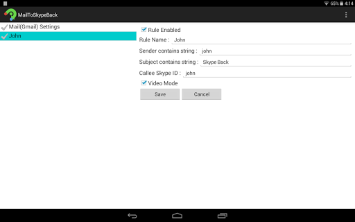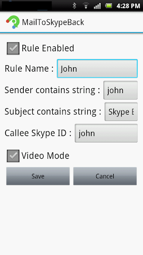 (2)Skype call back request mail sender(your gmail address or name) and subject strings