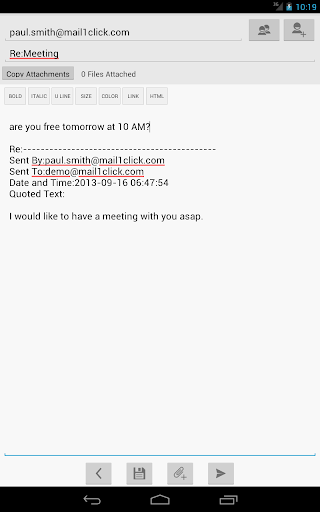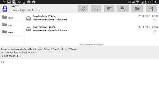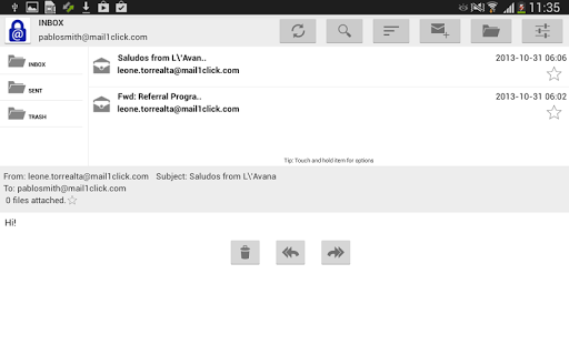 You can access your encrypted mailbox using the your Android smart-phone or by the web mail interface available at: https://www.mail1click.com