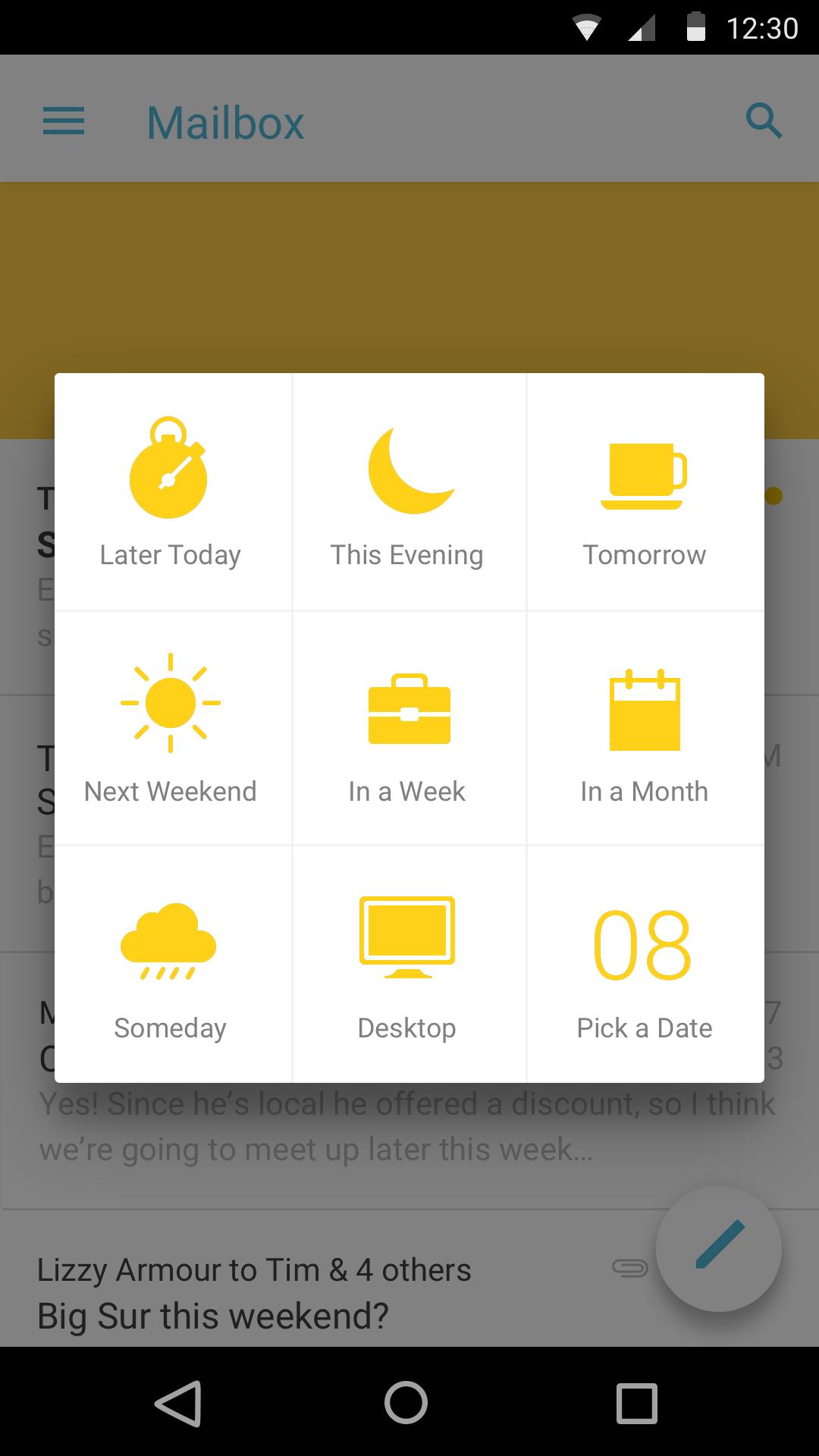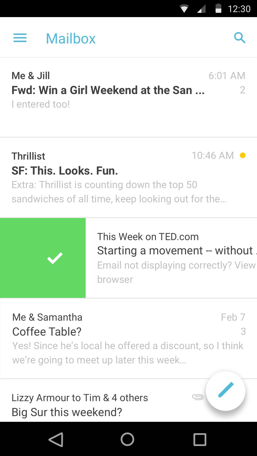 Mailbox is a completely redesigned inbox that makes email light, fast, and mobile-friendly. Quickly swipe messages to your archive or trash. Scan an entire conversation at once with chat-like organization. Snooze emails until later with the tap of a button — they’ll return to your inbox automatically so you can focus on what's important now.
