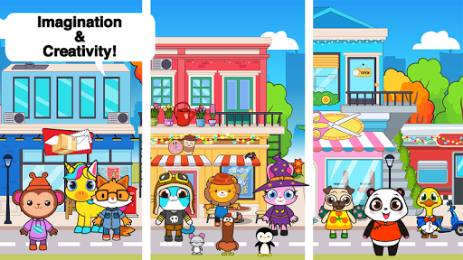 - Pretend play in your very own Town which includes venues that Bunny, Fox, Panda, Pug, Duck, Unicorn, Raccoon, Monkey, Lion, and Kitty all dressed up in adorable outfits for every occasion!