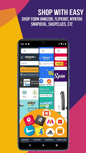 • All In One Online Shopping App - Shop on all major apps like Flipkart, Amazon, Snapdeal, Shopclues, etc.