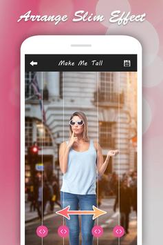 Choose a picture from gallery or take a pic using camera, and use the height and width scales to look taller and slimmer. This is also a complete photo editor in itself.