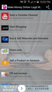 With the help of this app you can save a lot of time wasted on browsing through countries of online jobs listings and internet ads which mostly never help you achieve any results .Pick up one of these ways and start Making Money Online Easily and Legitimate , No scams, Promised , because I filtered all the ways in this app before posting them.