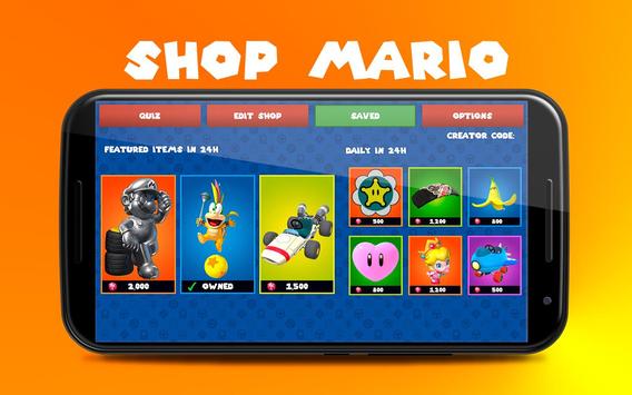 Are you ready?, discover the best customization shop for your favorite video game characters. You'll find Skins, Rubies, Gliders, Emotes, Special Skill, Coins, Character and a fantastic question game. How much do you really know about Mario, do you think you can answer more than 30 questions? Don't wait any longer and enjoy the Mario Shop, download it for FREE right now!