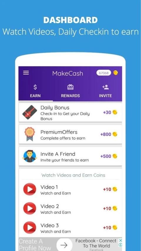 You can Watch and Earn, Refer and Earn using this app. Start earning free cash now.