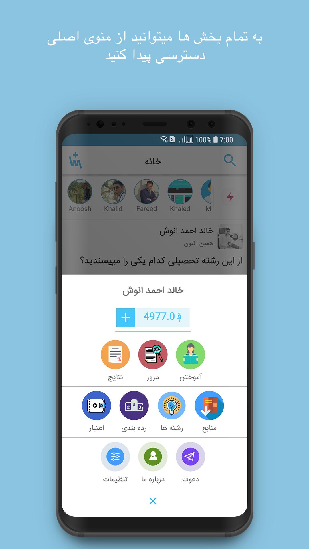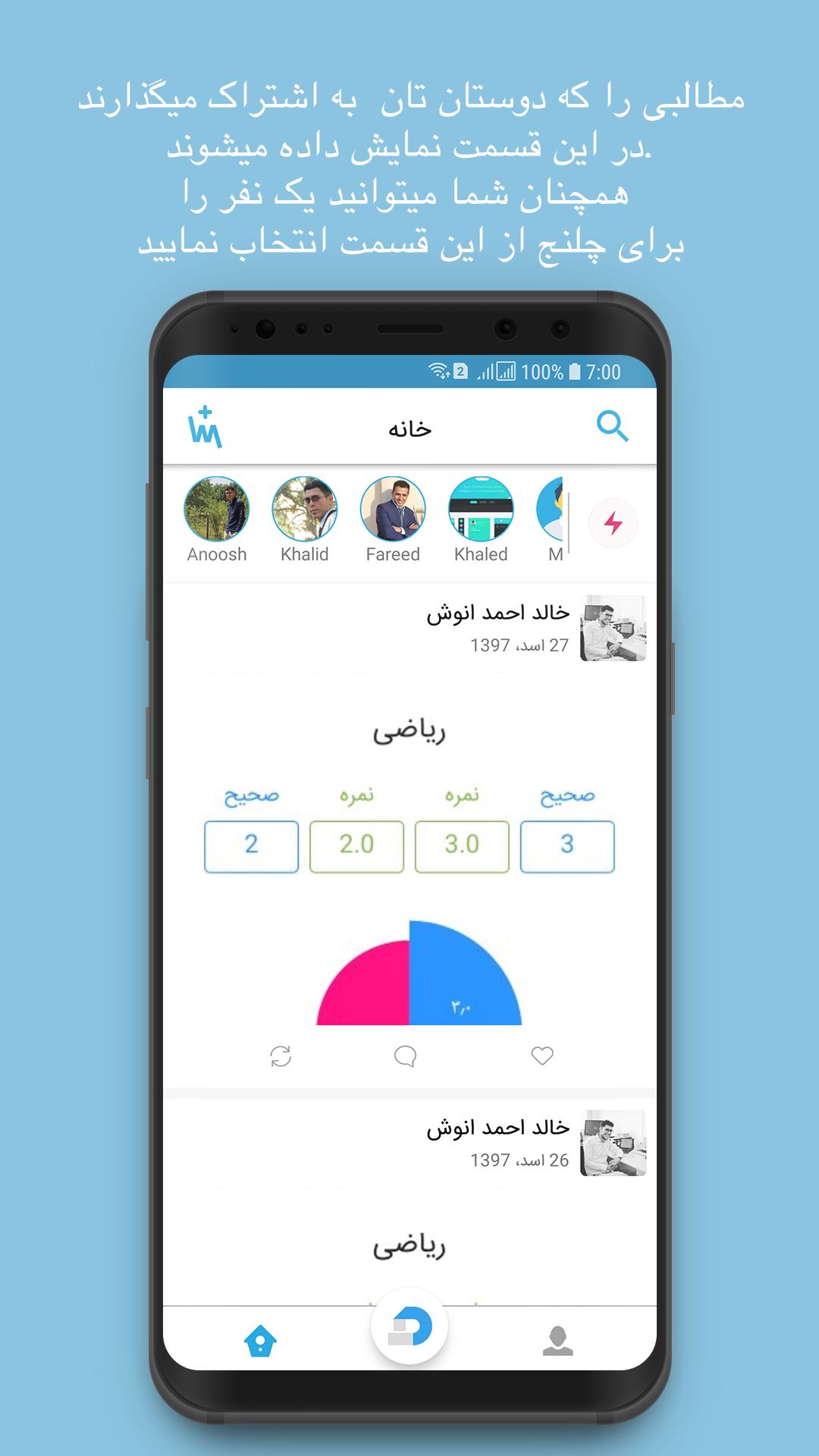 ۴. چلنج دادن دوستان به امتحان در مضامین و فورم های سوالات.