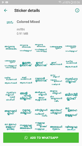 This WhatsApp sticker pack app contains stickers related to Islamic greetings and communication. These stickers are labelled with Malayalam Text.
