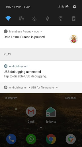 User can navigate to other apps with Purana playing in the background. Play and Pause functionality is also provided from the Notification panel.