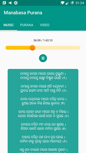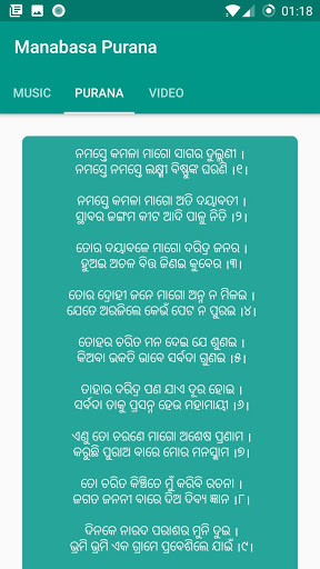 This app contains Laxmi Purana Audio, lyrics and video by Namita Agrawal & Geeta Dash. All three things present in different section in Odia language.