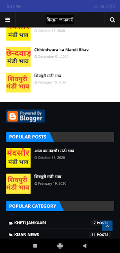 ,देवास ,नीमच ,छिंदवाड़ा ,हरदा ,खंडवा ,मंदसौर ,शिवपुरी ,ग्वालियर मंडी भाव दर्शाया जाता हे ,और मंडी का अनाज का भाव दर्शाया जाता हे जैसे :- गेहू ,मसूर ,सोयाबीन ,धनिया ,चना ,पियाज ,सरसो,मक्का ,उरद और आदि का भाव दर्शाया जाता है.