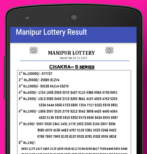 We publish daily Manipur lottery result. It is an android app from G-store Solution for who want daily results right from smartphone. We give live updates of result directly. We are the fastest publisher. We deliver result before any other app publishes.