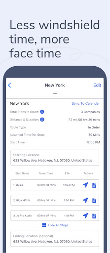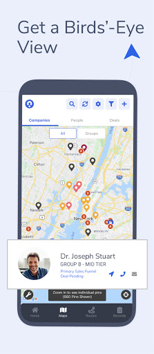 - Route Planner: Create, save and share optimized routes based on location, priority, deal size and more