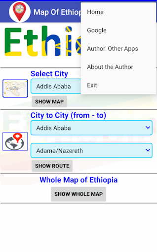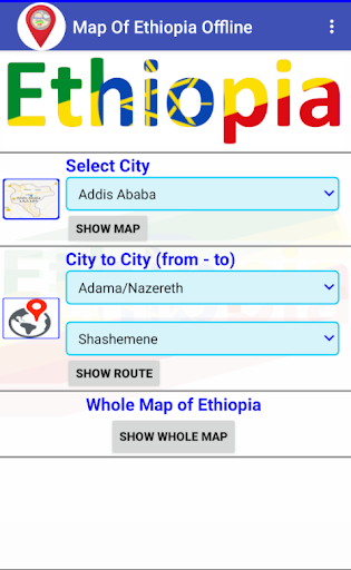 Map Of Ethiopia Offline is designed to access map offline and also route between two points in the country. The App includes also major city maps so that users can even route and find-out distances between two points in a city. The app will also divert to a Google Map in case users are connected to the internet.