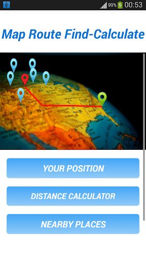 Map Route Find-Calculate App allows you to get detailed maps anywhere around the world, informs you about the latitude, longitude & the address of your current location, nearby places(cafes,Banks,Bus, Gaz Stations, restaurant,schools, police...).