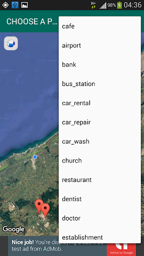 2. Click on Nearby places to get list of places near you(50000 m) like cafes, restaurants, car repair, Schools... with possibility to change MAP types & back to current position