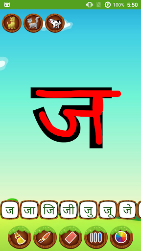या app मध्ये मराठी भाषेतील प्रत्येक मूळाक्षर विविध रंगांमध्ये गिरवता येते.