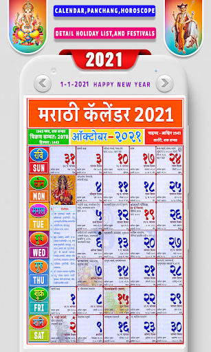मराठी दिनदर्शिका 2021 : Best Marathi Calendar 2020. This free application includes Festivals, Maasam, Vaaram, Dates, Thithi, Nakshatram, Amavshya, Poornima, Rahukal, Panchang, Kundli, Dindarshika, Rhashi Bhavishya, Aarti Sangrah. includes all months calendar, Festivals, Holidays, Shub Muhurt - Marriage dates, Vehicle purchase date, House warming / Griha pravesha dates
