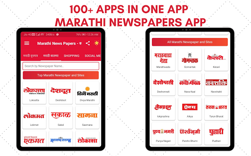 1. Marathi News Paper App contains Top Level Marathi Newspapers like - Loksatta | Sakaal | Lokmat | Maharashtra Times | Pudhari | Saamana Newspaper | Tarun Bharat Newspaper | Punyanangari Newspaper | Deshonatti, and more.