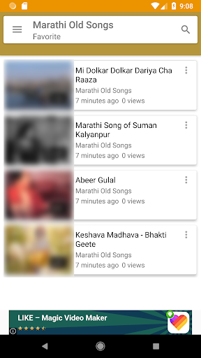 In Marathi old songs app one can easily bookmark their favorite marathi video song and then watch them later by going to favorites section from the navigation bar.