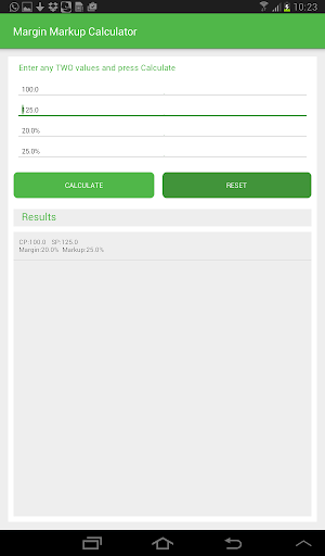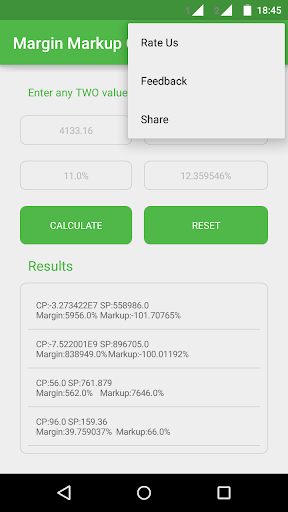 The Margin Markup Calculator is an excellent app for calculating values such as Margin Percentage, Markup Percentage, Sales Markup, Percentage Markup, Cost Price, Selling Price, etc. It is a handy tool for students, sales, and business people.