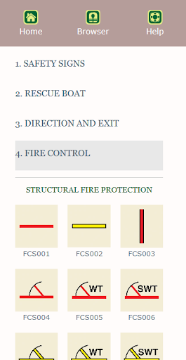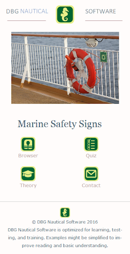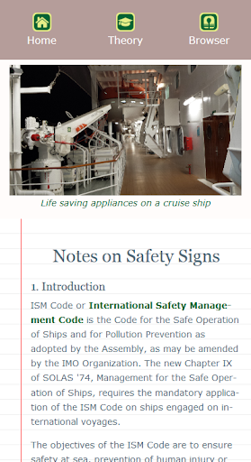 This theory section serves as a backup and makes this app a complete guide to safety signs on ships.