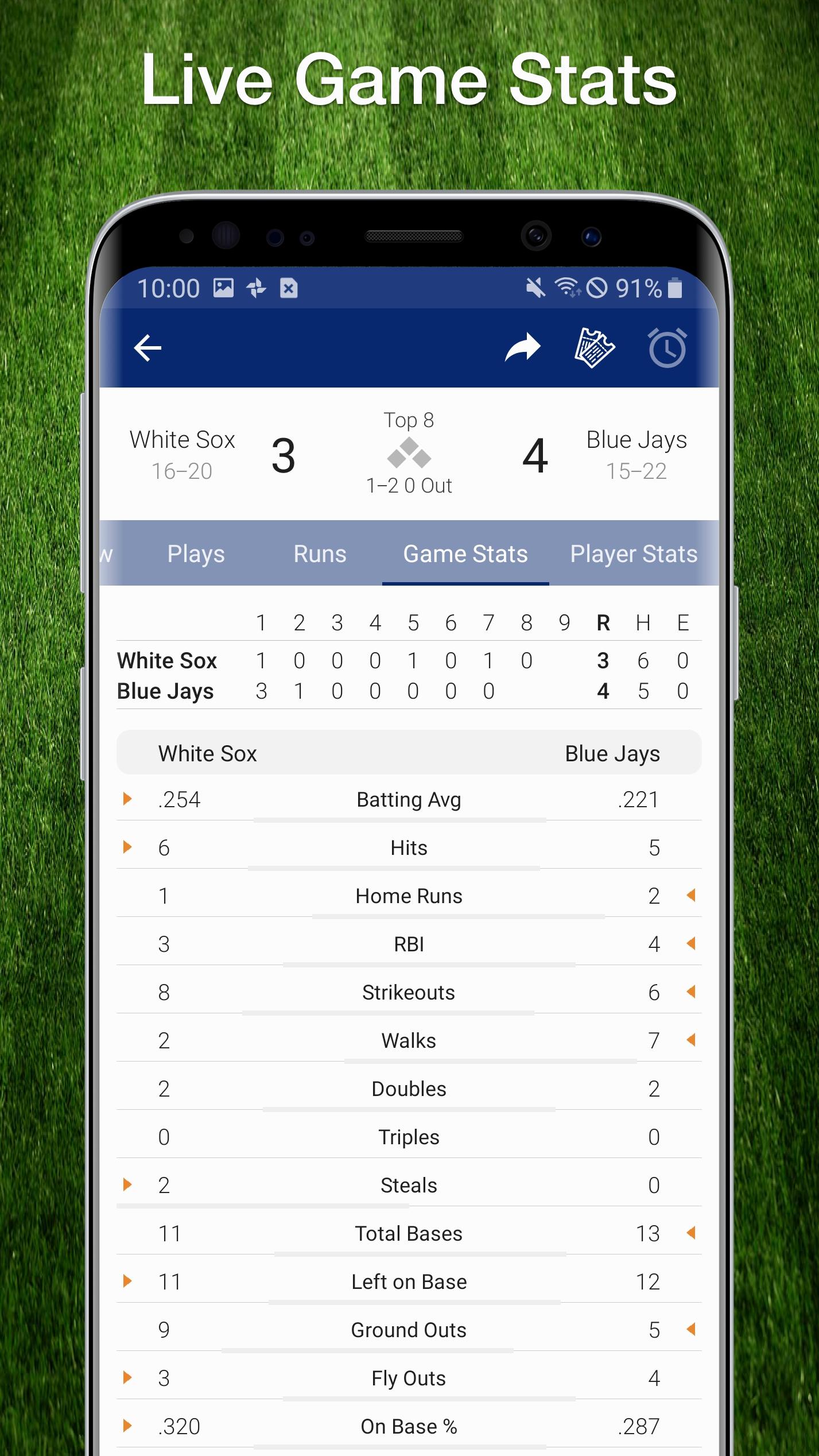 * Immediate game notifications for scores, close games, extra innings, and more!