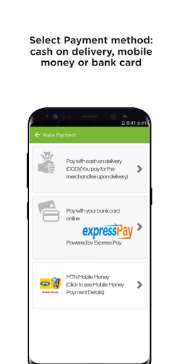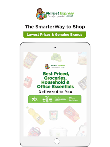 Shop for groceries, appliances & more with the Market Express app on your phone. Enjoy same day or next day delivery in Accra and Tema and Bus Parcel Office delivery to major cities. Pay easily by mobile money, bank card or cash.