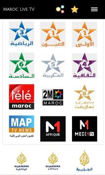 Alaoula (Channel One), Al Oyoun (Channel One Sahara), Arriyadia (Sport), Arrabiaa (Cultural), Al maghribiya (News), Assadissa (Religion), Attamina (Amazighiya), 2M, Médi1 TV Arabic, Médi1 TV French, Médi1 TV Afrique, Télé Maroc, MAP News.