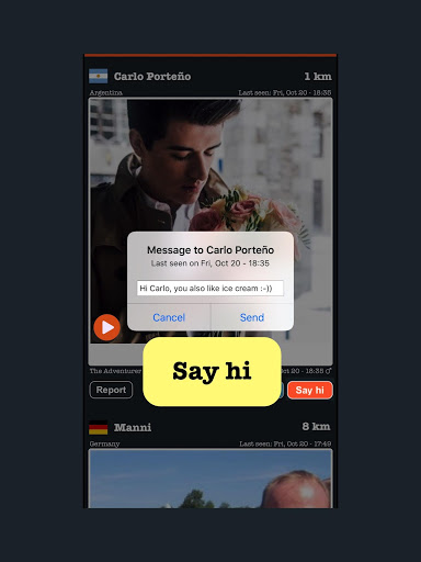 Users don't need to login, so we have NO identities of them. Users just need a nickname and one published picture to send messages. So please be careful with whom you get in touch with.